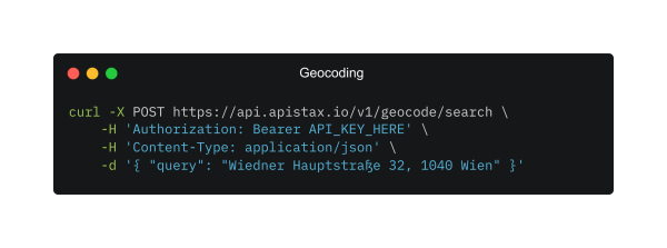 -d '{ "query": "Wiedner Hauptstraße 32, 1040 Wien" }'