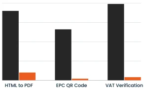 Pre-built and well-tested cloud services save you development time and money and give you access to a wide range of possibilities. With APIstax, you can integrate services such as rendering a PDF from HTML, generating an EPC QR code, verifying VIES VAT numbers or performing a reverse geocode query in minutes. Our SaaS services are hosted in the cloud in Austria and run redundantly: 24/7 up and running.